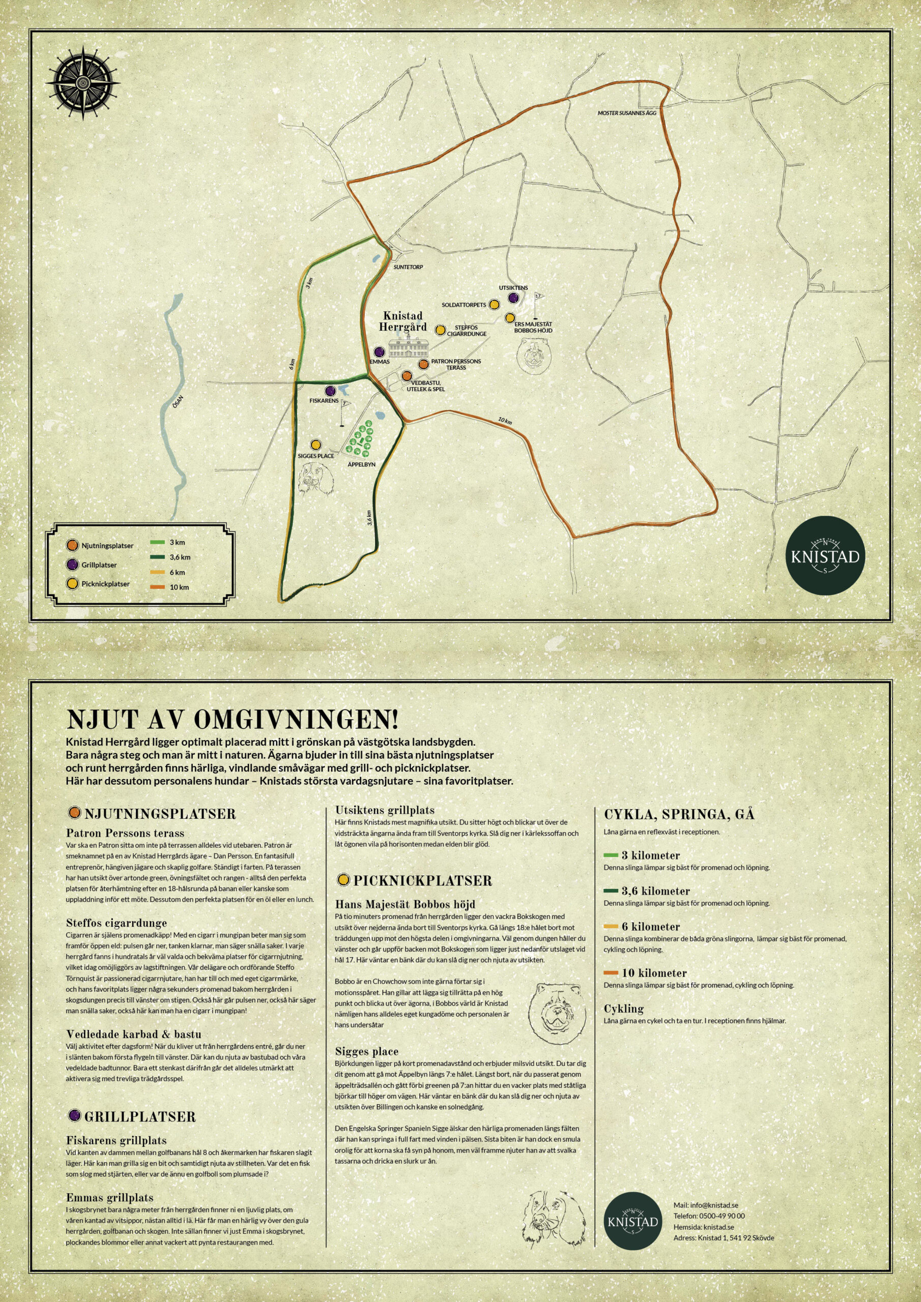 Knistad Herrgård ligger vackert placerad mitt i Skaraborg, mellan Vänern och Vättern. Här kan du njuta av landsbygden med stil. Runt om oss finns vackra sevärdheter, till exempel våra goda grannars små gårdsbutiker och lantgårdar och en hel del härliga promenadstråk, loppisar, butiker och badplatser. Kom som du är och stanna ett slag, vi har bullat upp med utflyktsmål och ger dig våra bästa smultronställen att avnjuta, allt från vår direkta närhet till mindre bilturer. Stanna 2 nätter och få 15% rabatt, stanna tre nätter eller fler och få 20% rabatt – på HELA vistelsen!