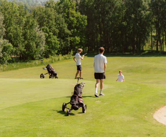 Vår 18-hålsbana är både rymlig och omväxlande, vilket gör den perfekt att spela golf på för nybörjare eller erfarna golfspelare. Med välskötta greener och en omgivning som andas charm, blir varje runda en upplevelse för dig och ditt golf team! Efter spelet kan du koppla av på vår terrass med en njutbar lunch och en bärs, samtidigt som du blickar ut över golfbanan.