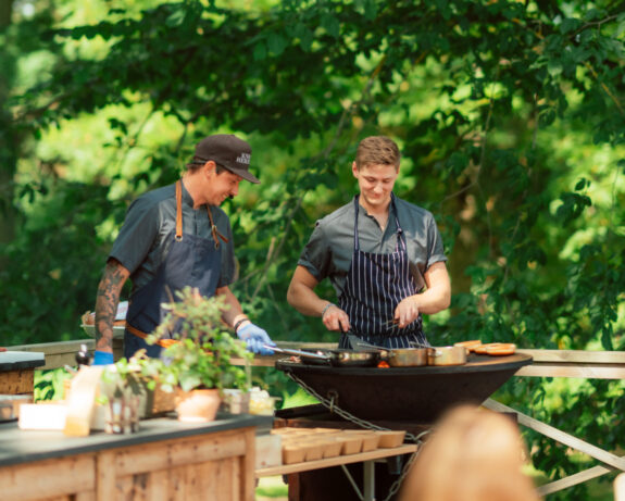 Matlagning utomhus, tillsammans med våra prisbelönta kockar, är en av många roliga aktiviteter vi på Knistad erbjuder i samband med konferens.
